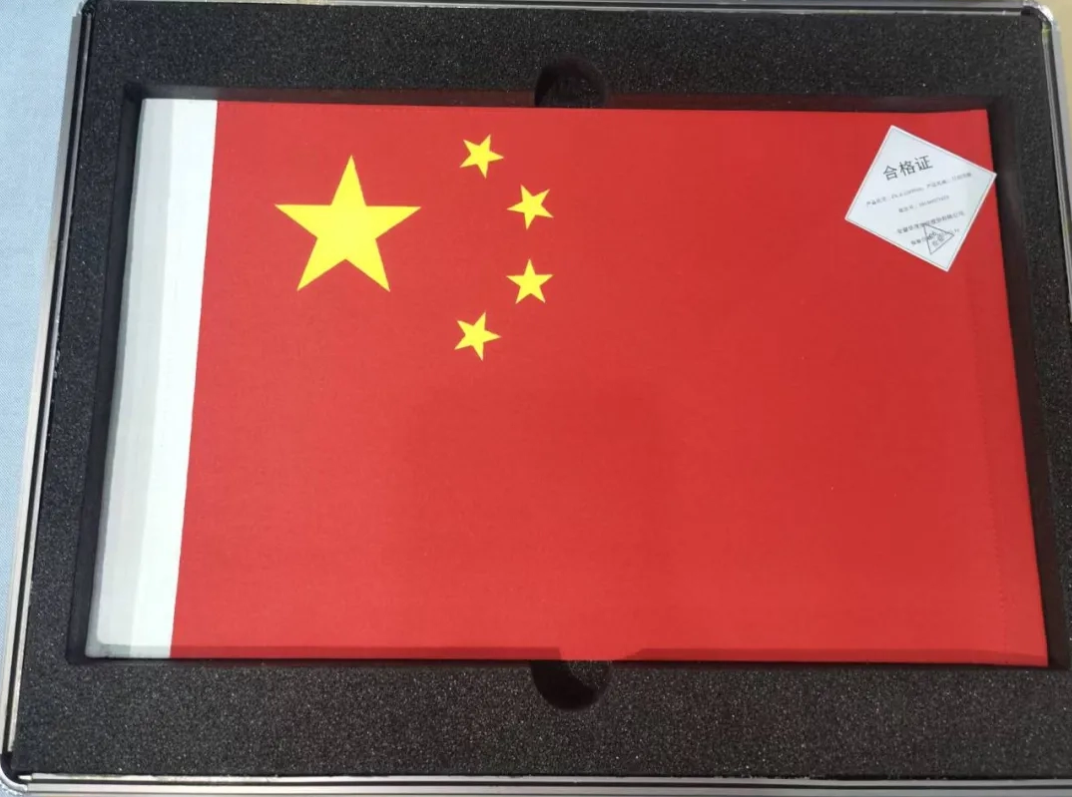 最终,由中国航天三江集团联合武汉纺织大学等单位,成功研制出无温控保护、独立动态展示的“石头版”高品质织物国旗。