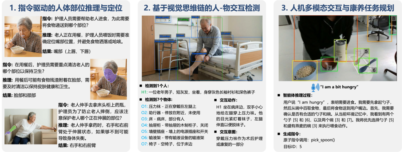 老人表达往往模糊,有时只说半句话,有时用手指一指,需要机器人从碎片化的信息中理解意图;老人动作迟缓,起身、抬手、转身都慢,需要机器人耐心等待、主动适应;老人手抖,递出的杯子会晃动,需要机器人伸出机械臂,稳稳跟随,直到杯子送到老人嘴边。