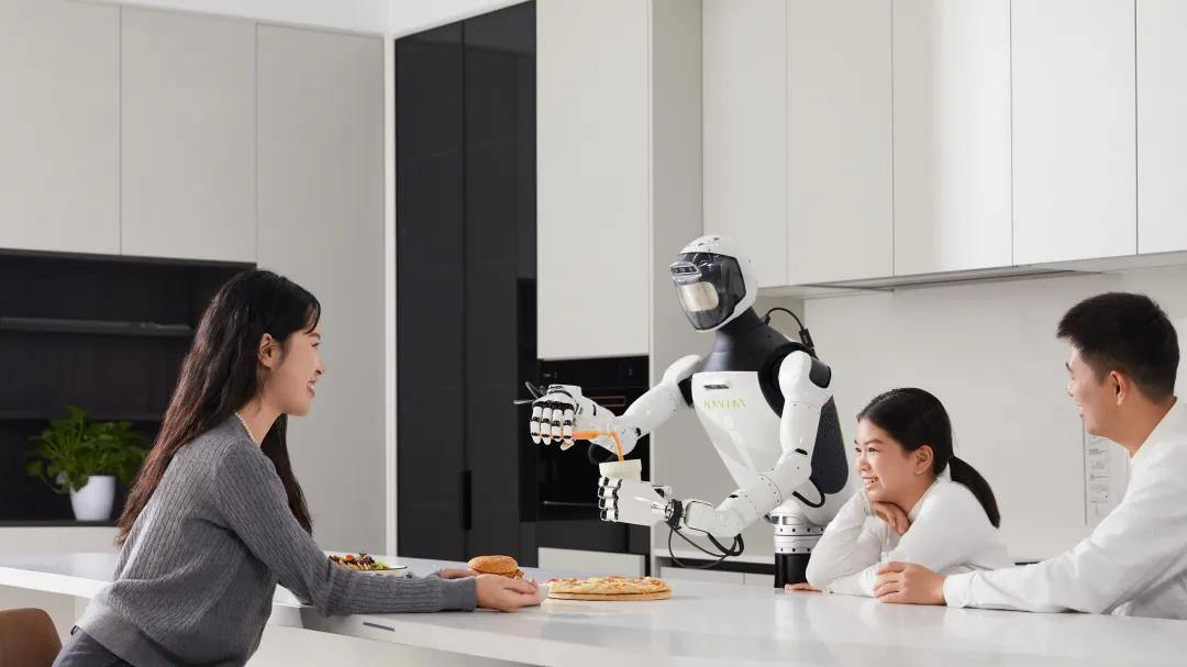 中午,父母在家与机器人闲聊,它递上一杯温度刚好的水。傍晚回家,它正在厨房备菜,准备做一顿晚饭。