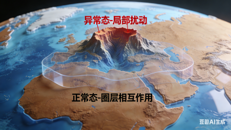 物理分解的应用边界,远不止于生命与大气系统,它同样适用于固体地球、宇宙天体等更宏观的系统。地球表面看似杂乱无章的地形地貌,实则是不同时空尺度正常态与异常态叠加的结果:大尺度的大陆轮廓、海洋盆地,是地核与外层岩浆流体角动量交换、各圈层相互作用形成的“正常态”;而局部的山川峡谷、火山地貌,则是该层次下的“异常态”。即便这些地形最终呈现混沌分布,通过物理分解,我们仍能找到隐藏的秩序——比如早期岩浆流体辐合带两侧大陆对称分布的特征。这意味着,物理分解能穿透宏观系统的混沌表象,找到其形成与演变的核心逻辑 [3]。