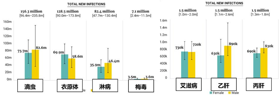 世界范围内一些常见传染病(15-49岁人群)2020年新发数量 | 图源:WHO