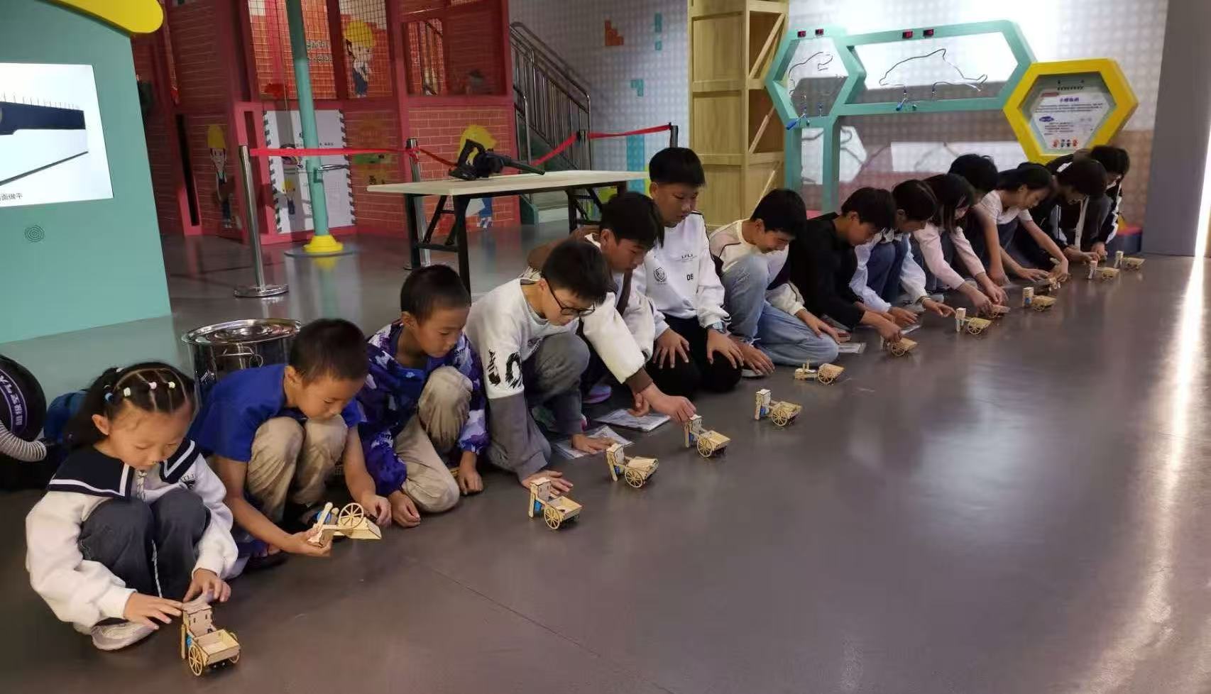 手工科普环节也是孩子们喜欢的活动。在科普志愿者的耐心指导下,孩子们动手制作了“机器人推车”——从零散的纸板片开始,一步步拼装出一辆辆“机器人推车”。完成的那刻,满满的成就感写在了每个人的笑容里。